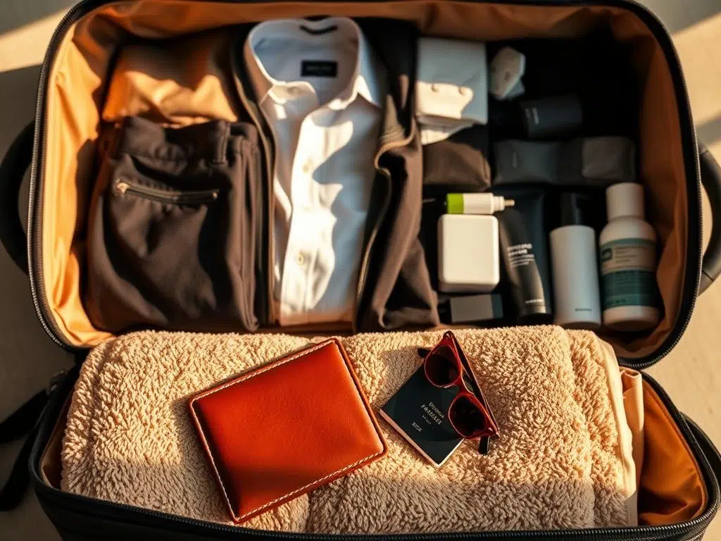 عند تجهيز حقيبة السفر، التنظيم مهم جداً. استخدم تقنية الرول للملابس لتوفير المساحة. هذا يجنب التجاعيد ويستغل المساحة بشكل أفضل.